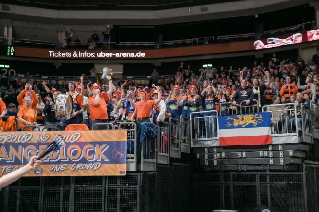 Mit Schlager- und Partyhits in Berlin angekommen, kamen die wunderbaren Erinnerungen hoch, als wir vor zwei Jahren mit 1000 Fans vom Ostbahnhof Richtung Uber Arena (damals noch Mercedes Benz Arena) zogen. Wir waren 2024 zwar weniger, aber definitiv nicht leiser. Und so zogen wir wie schon in Braunschweig mit Schlachtrufen und Trommelgetöse Richtung Arena und bezogen dort unsere Plätze.